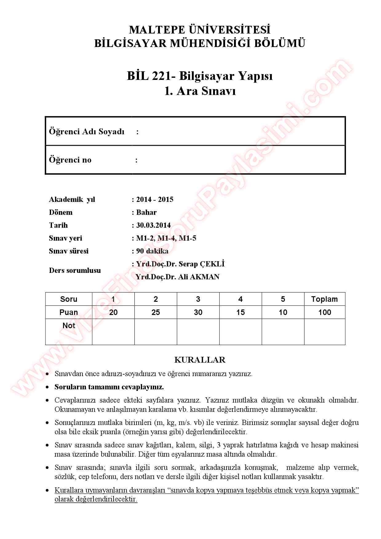 Bilgisayar Yapısı 2.Vize Soru Ve Cevapları 2-07-2015, 23:03