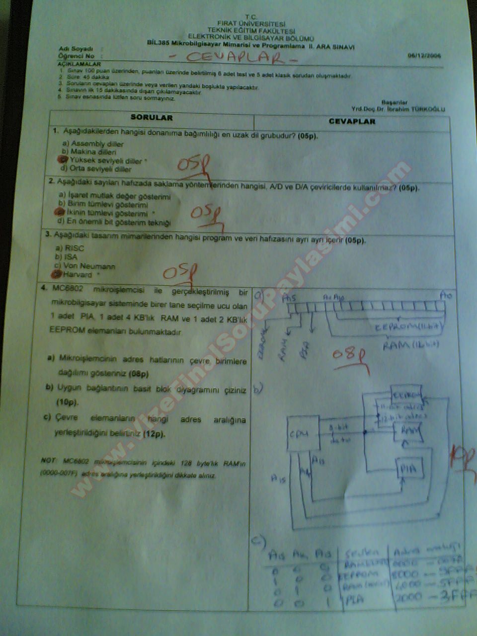 Mikrobilgisayar Mimarisi ve Programlama 2 Vize ve Final Soruları - 06-12-2006