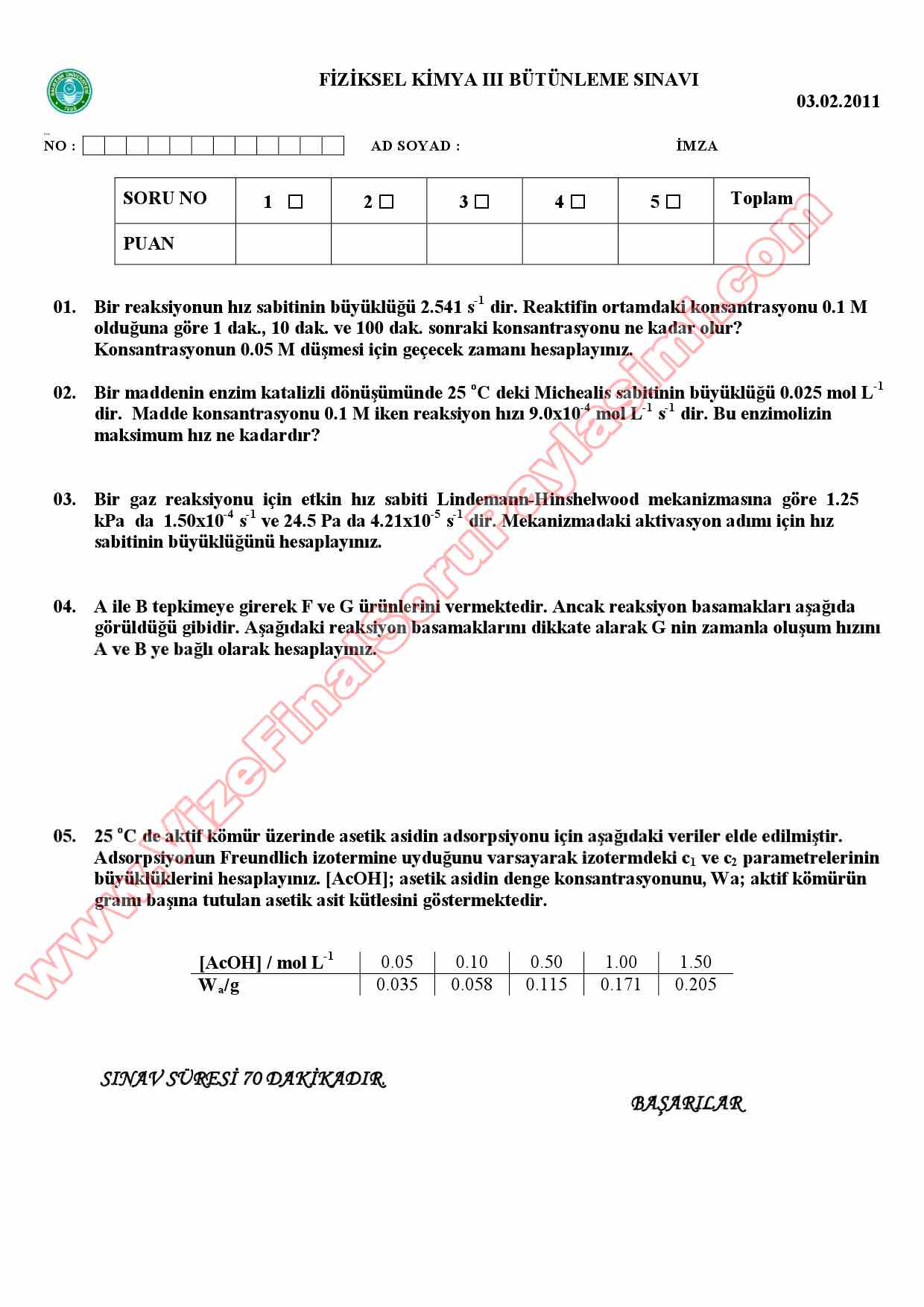 Fiziksel Kimya -2 Final Soruları 4-07-2015, 23:20