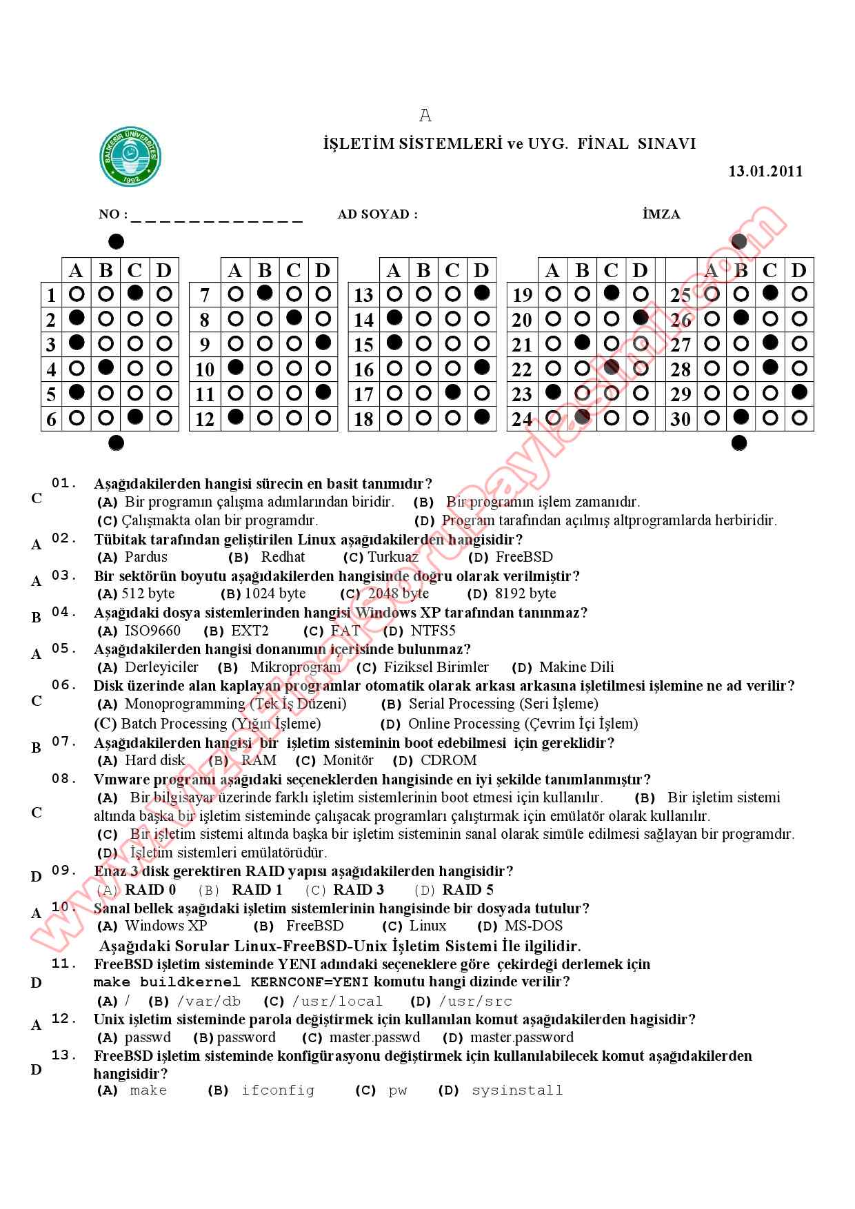 isletim sistamleri uyg final soru sorulari cevaplari cozumleri test balikesir uni GERİ DÖN-