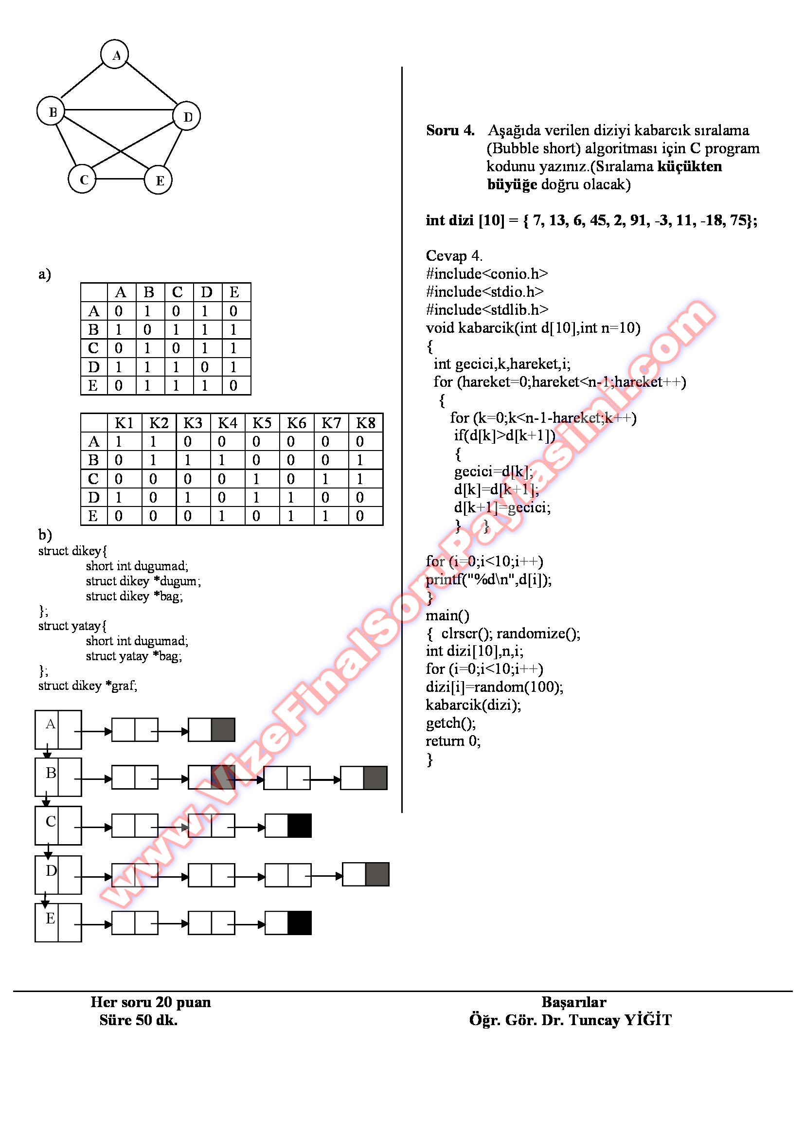 Veri Yapıları Dersi Vize Soruları - 19.11.2013 14-10-2014, 21:16