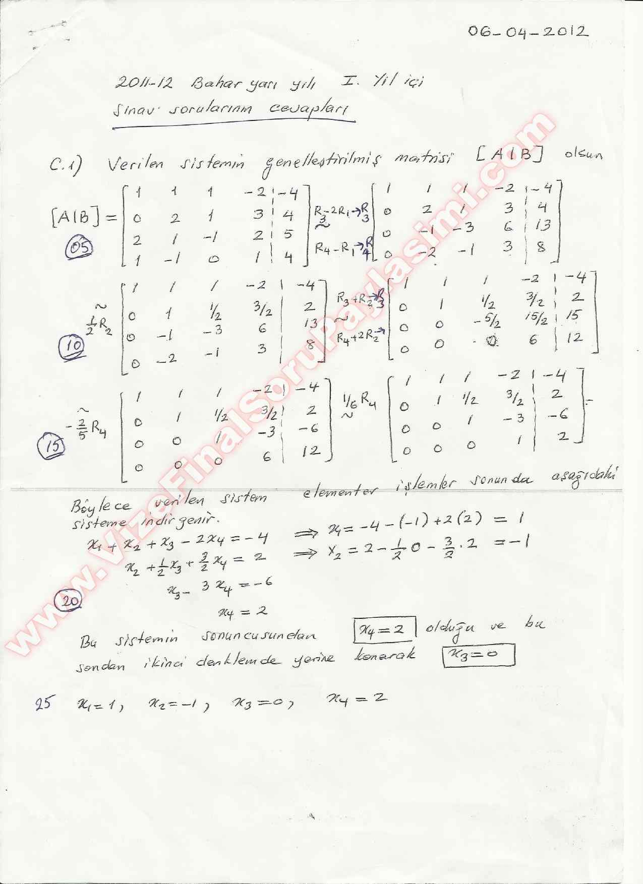 Lineer Cebir 2. sınıf 1. dönem Vize Sorusu ve Cevabı-2013 21-06-2014, 23:28
