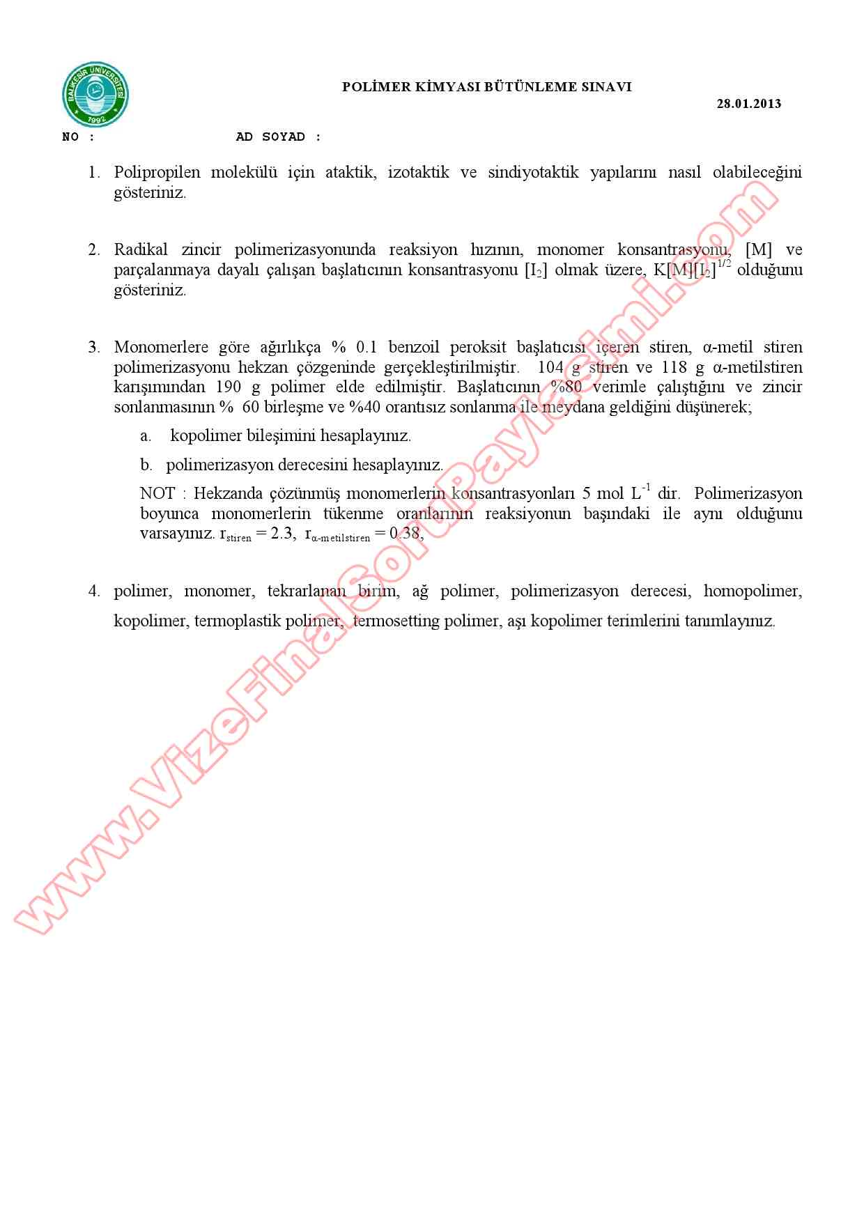 polimer kimyasi butunleme sorulari cevaplari cozumleri balikesir uni universitesi GERİ DÖN-