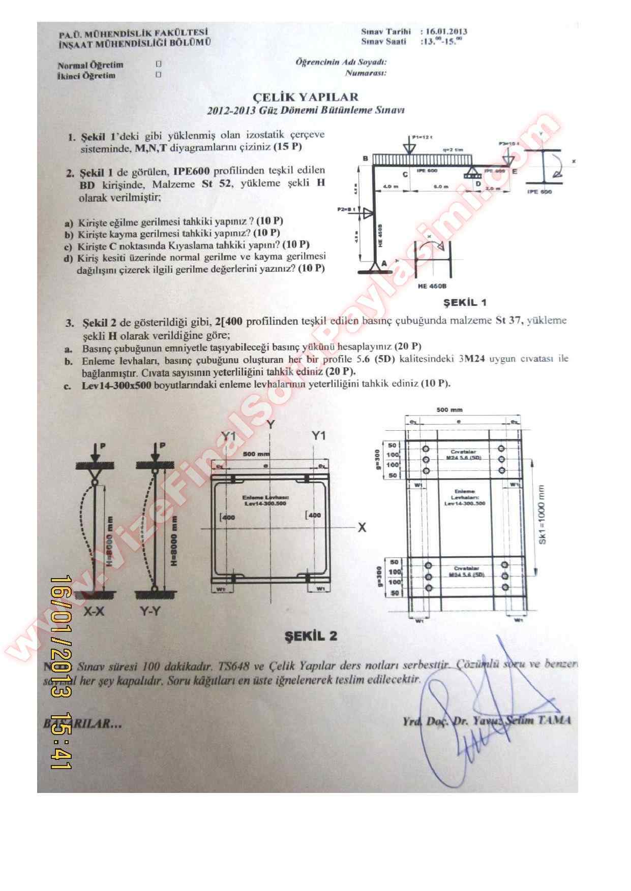 Vize ve Final Soruları / Pamukkale Üniversitesi / Çelik Yapılar Dersi