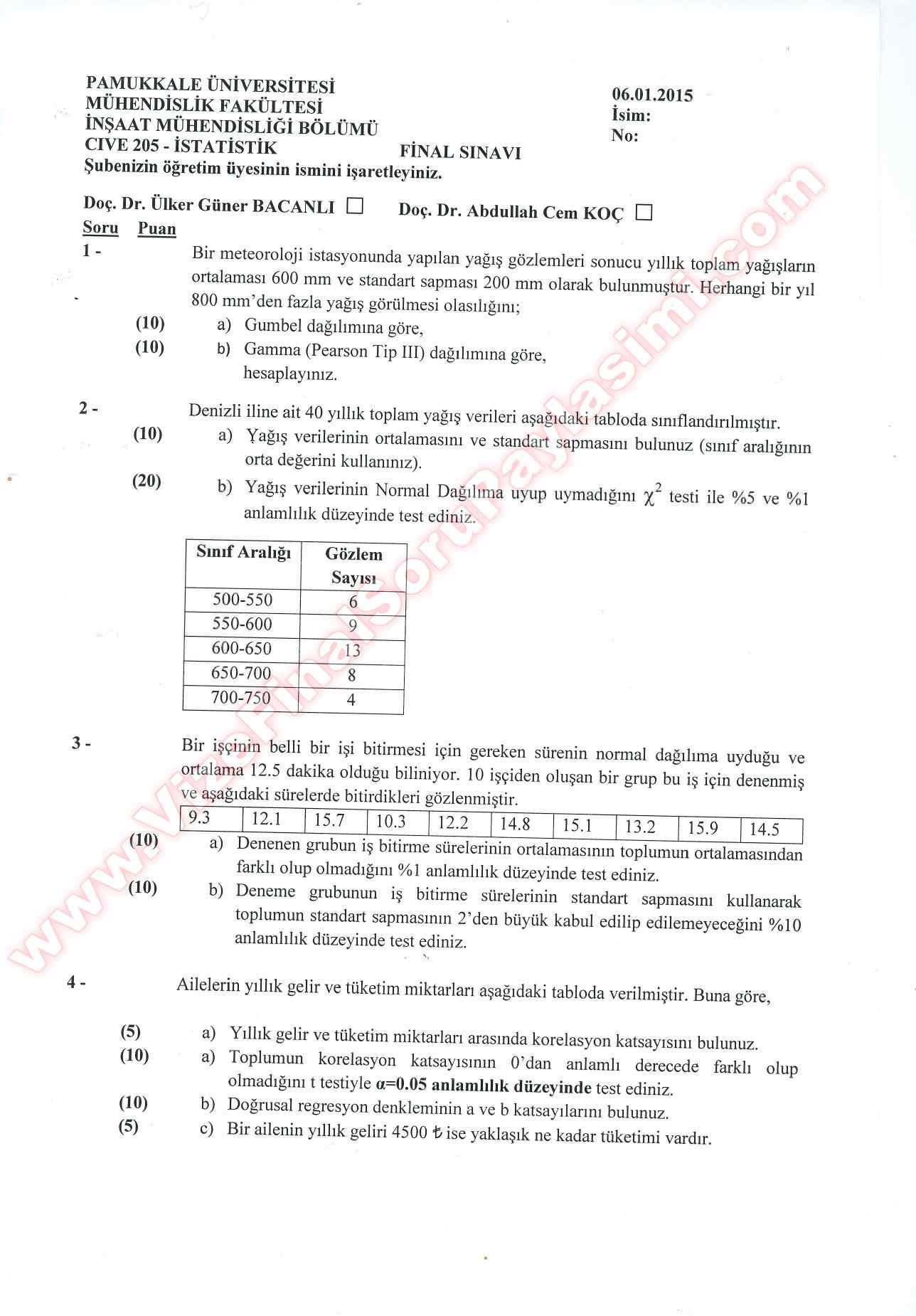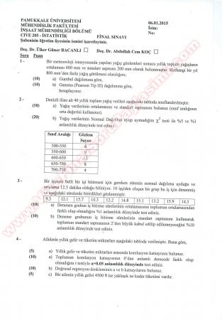 İstatistik Final Cevapları -2015