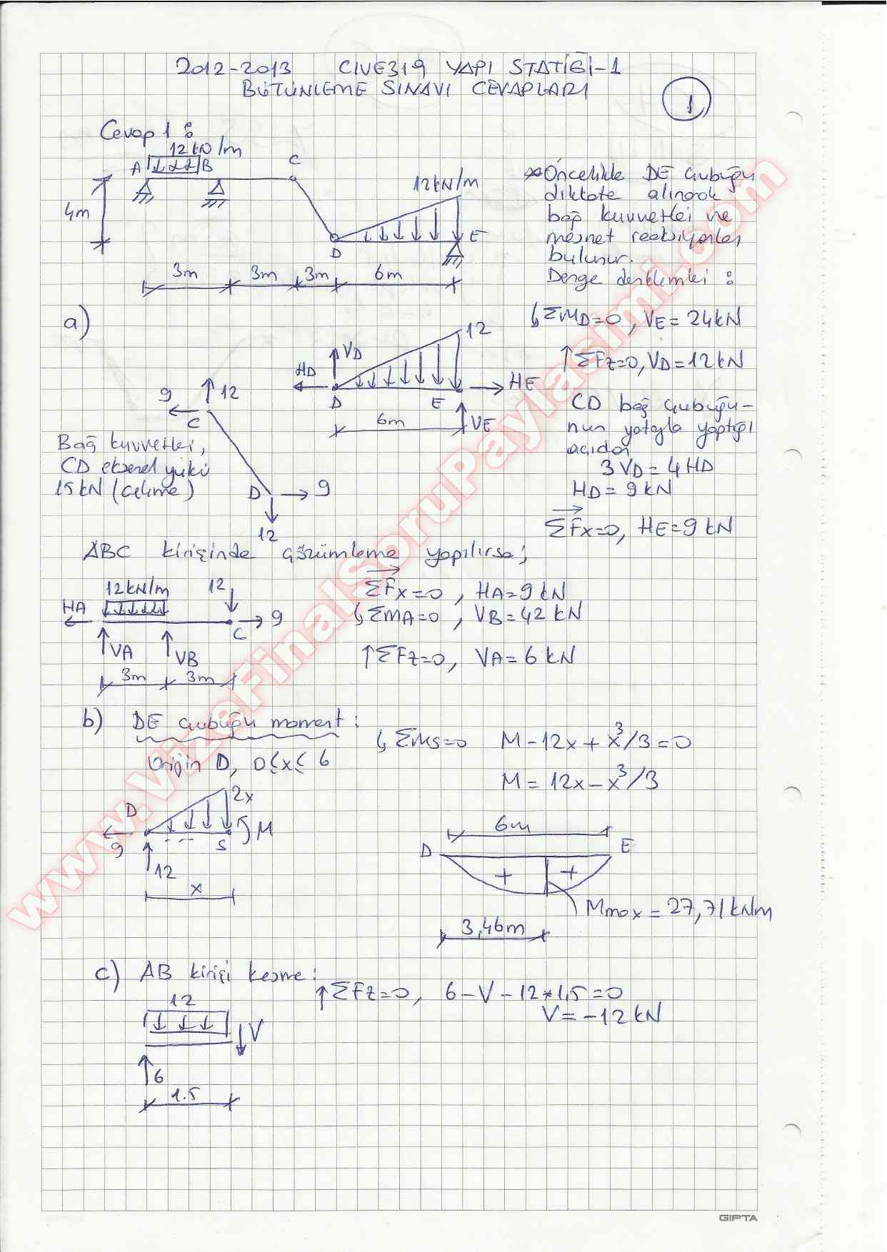 Yapı Statiği 1 Final Cevapları 2013 9-07-2015, 01:47