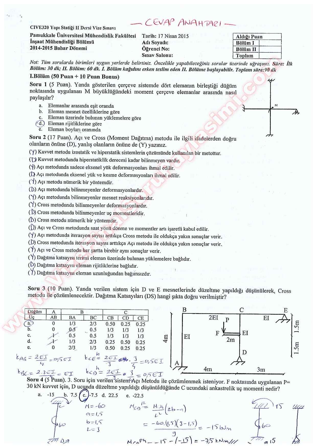 Yapı Statiği 2 Vize Soruları Ve Cevapları 2015