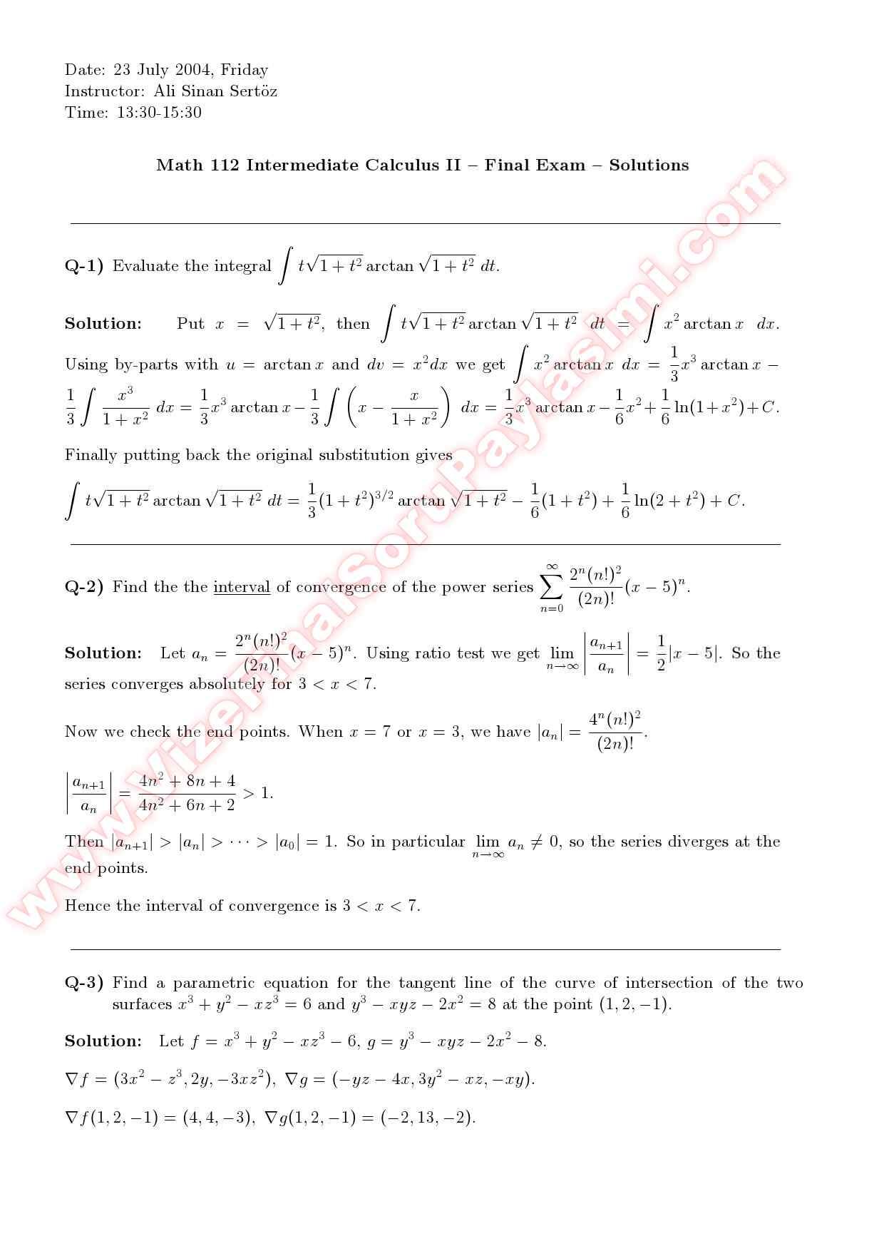 Intermediate Calculus2 final Solutions GERİ DÖN-