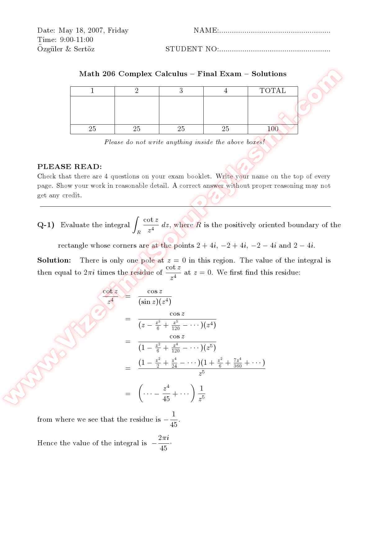 Complex Calculus final solutions 2007 GERİ DÖN-