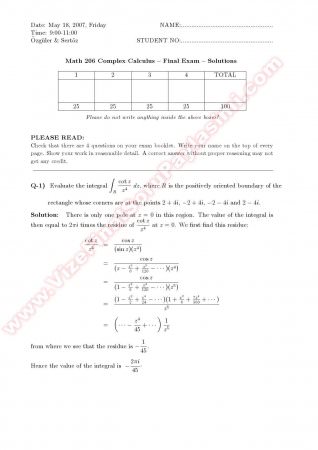 Complex Calculus Final Solutions - 2007 11-07-2015, 12:48