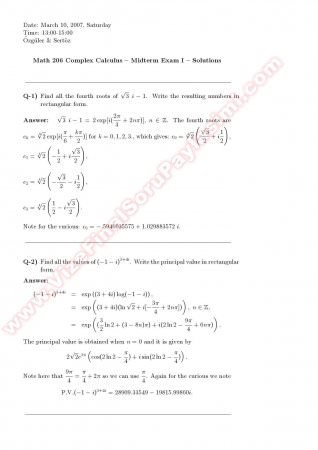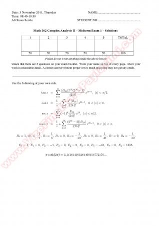 Complex Analysis2 midterm1 solutions 2011 GERİ DÖN-