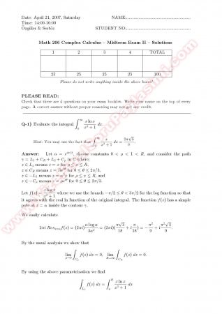 Complex Calculus Midterm2 Solutions - 2007 11-07-2015, 12:51