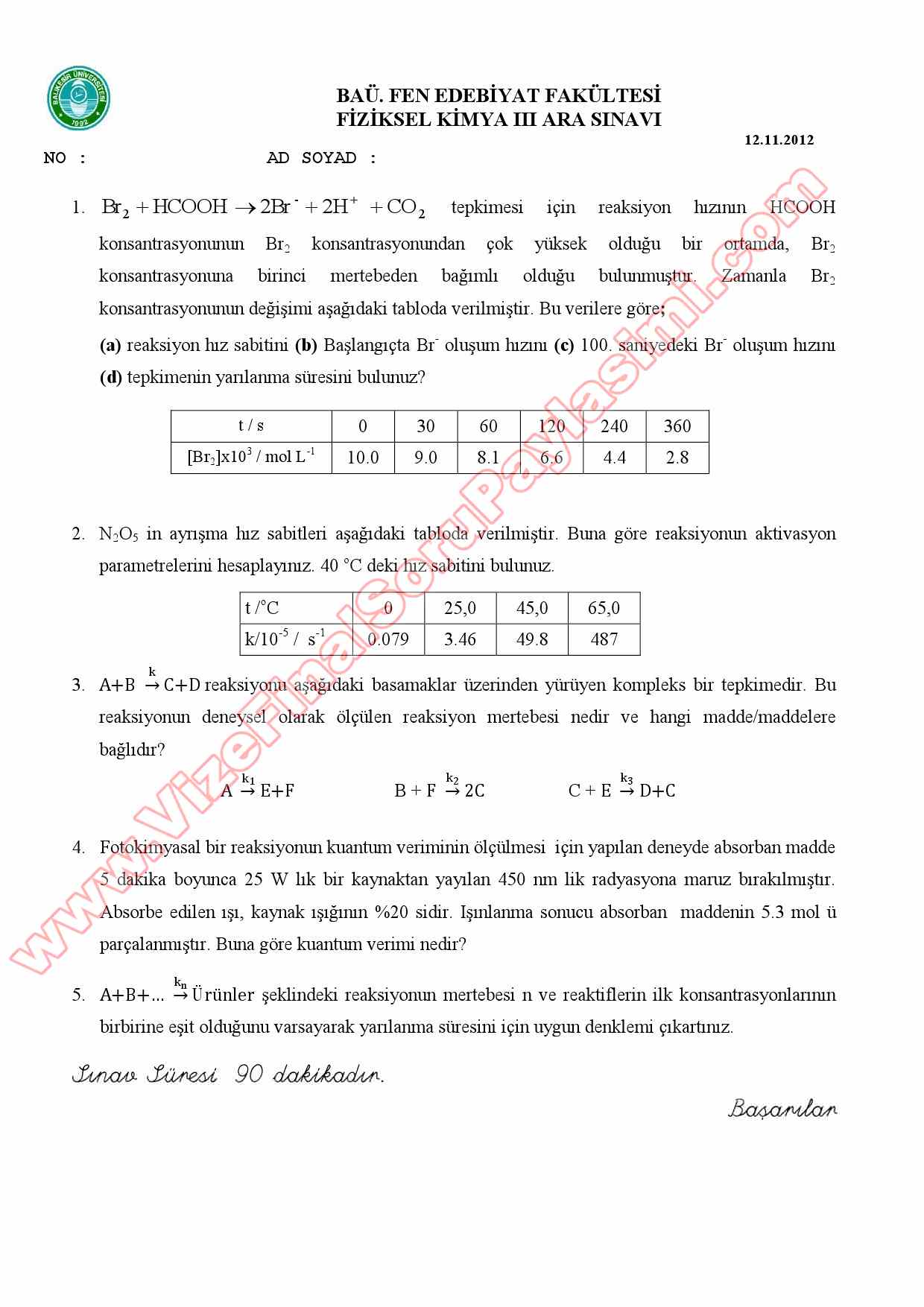 fiziksel kimya-3 vize sorulari balikesir uni universitesi