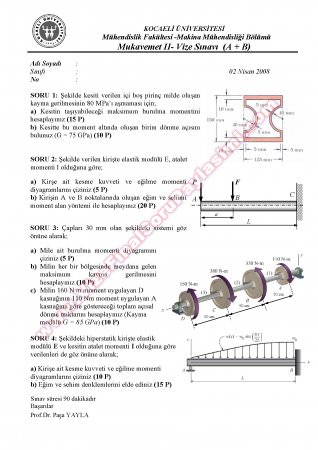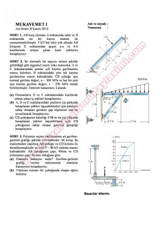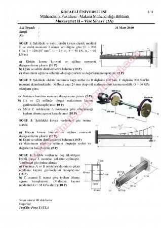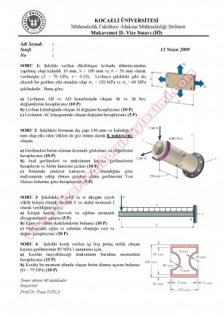 Vize ve Final Soruları / Kocaeli Üniversitesi / Mukavemet-2