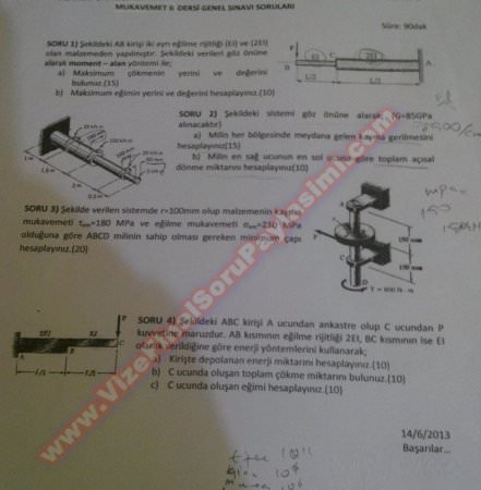 Mukavemet-2 Vize Soruları - 20.04.2013