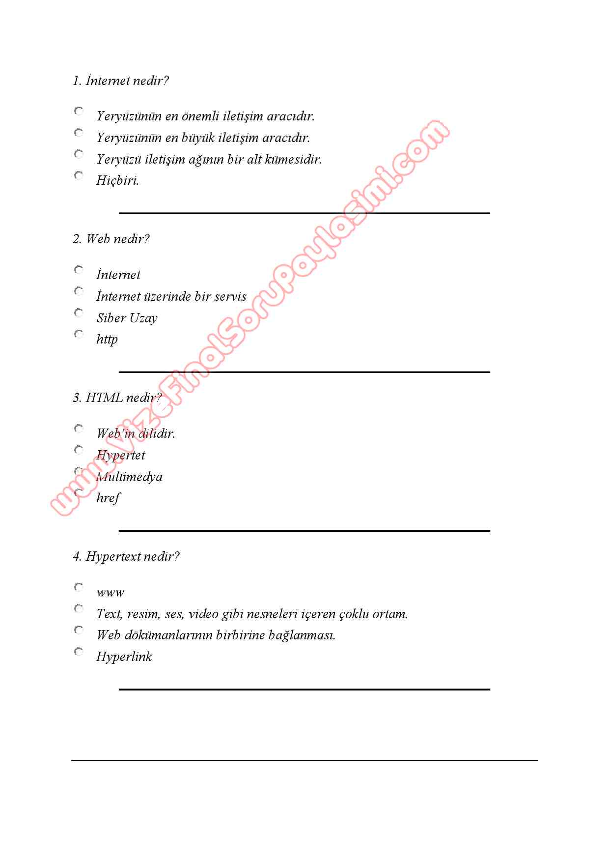 İnternet Programcılığı -1 Test Soruları 31-07-2015, 23:23