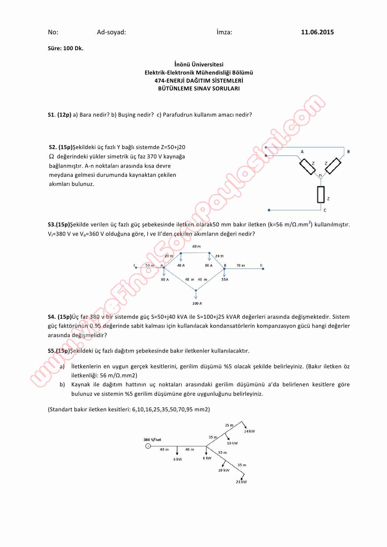 Enerji Dağıtım Sistemleri Dersi Final Soruları ve Cevapları 1-08-2015, 18:39