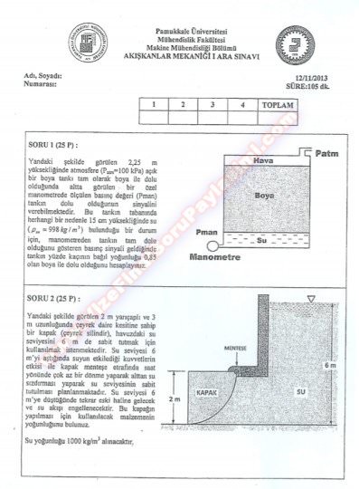 Akışkanlar Mekaniği Vize Soruları - 12.11.2013