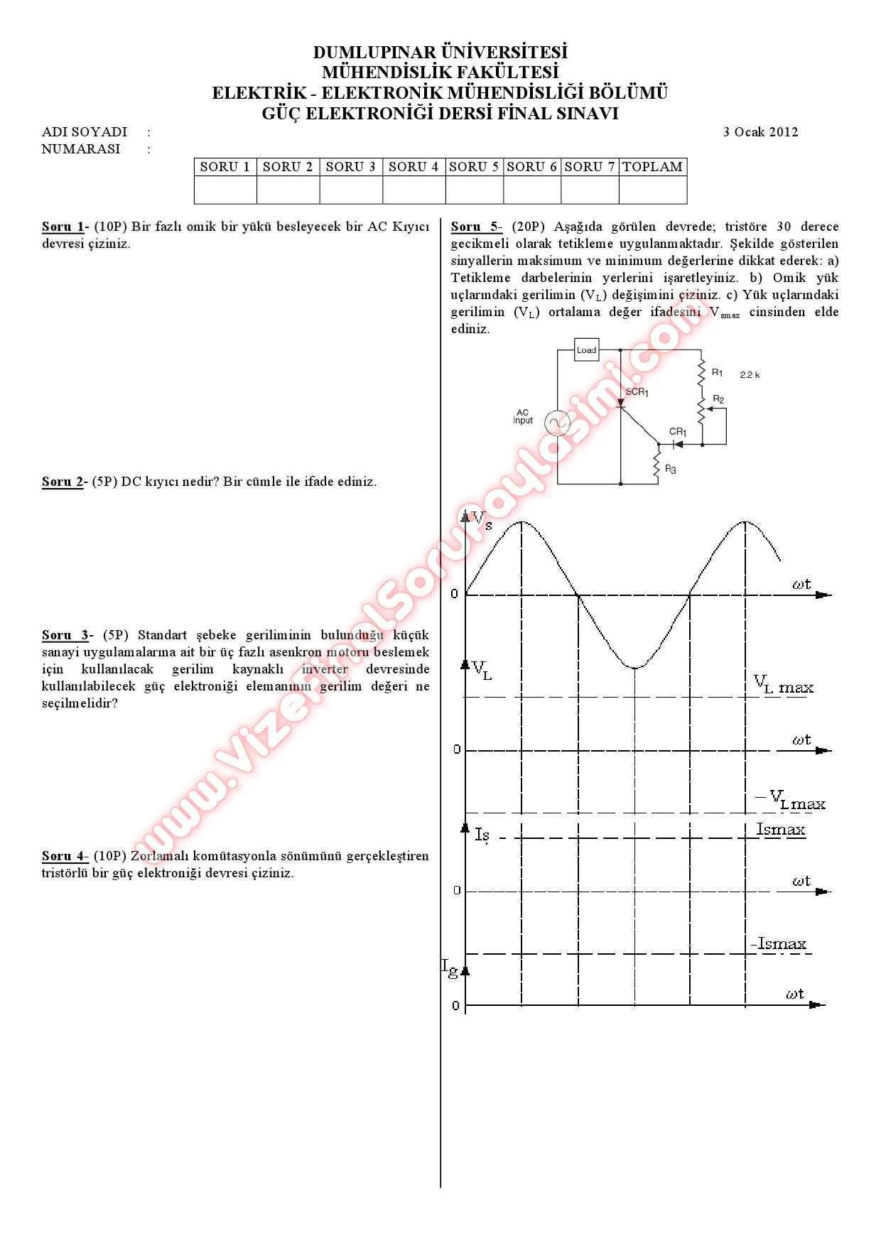Vize ve Final Soruları / Dumlupınar Üniversitesi / Güç Elektroniği Dersi