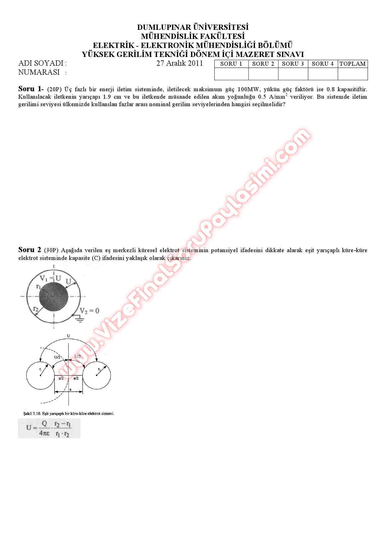 Yuksek gerilim teknigi final sorulari 2011 mazeret GERİ DÖN-