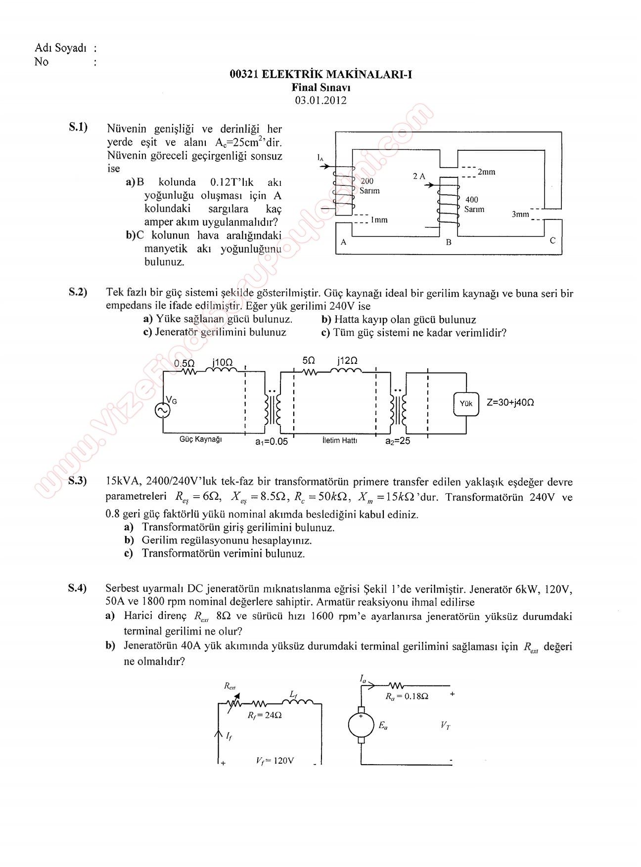 Elektrik Makinaları -1 Vize Soruları -2012 3-08-2015, 23:30