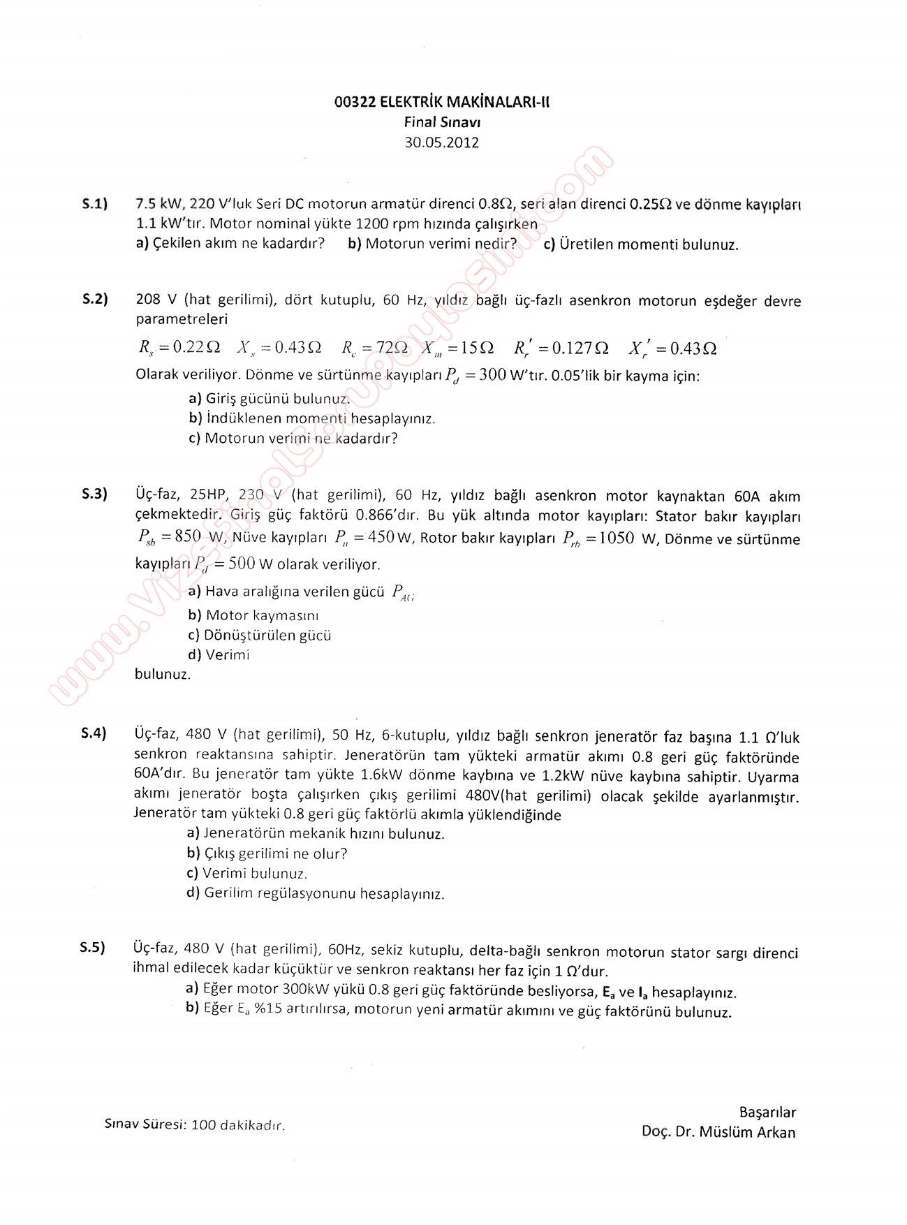 Elektrik Makinaları -2 Final Soruları -2012