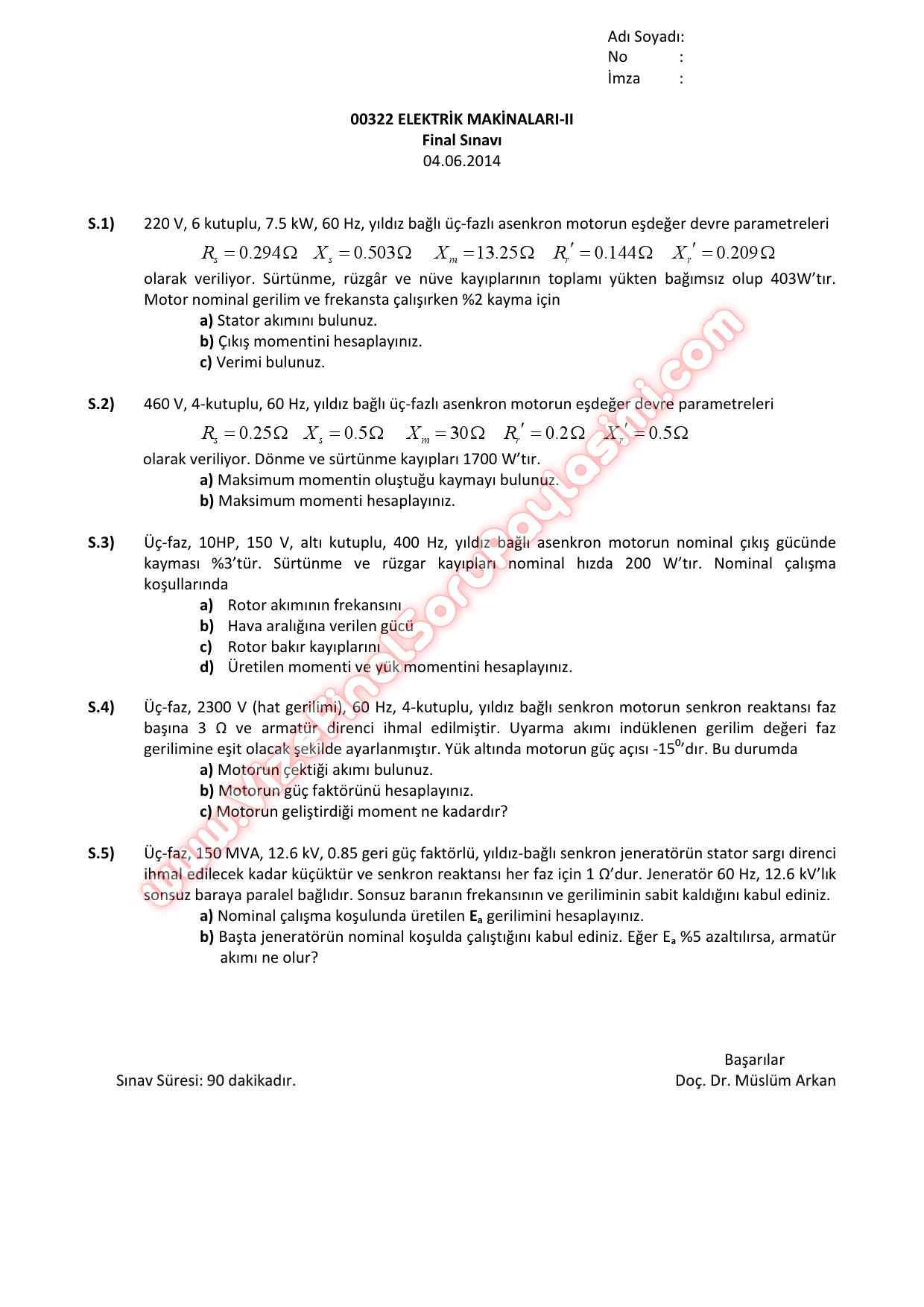 Elektrik Makinaları-2 Final Soruları Ve Cevapları-2009 12-12-2014, 17:19