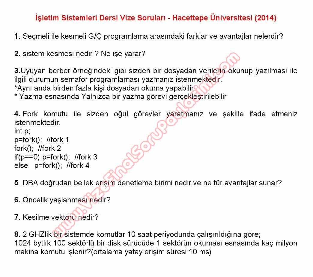 isletim sistemleri dersi vize sorulari hacettepe uni