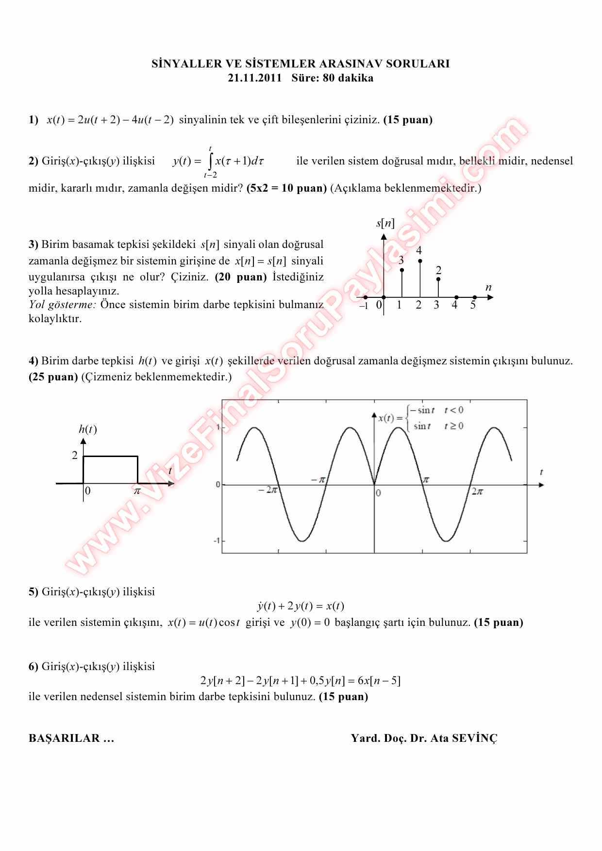 Sinyaller Ve Sistemler Vize Soruları Ve Çözümleri - 2011