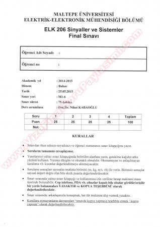 Sinyaller Ve Sistemler Final Soruları Ve Çözümleri 7-07-2015, 14:52