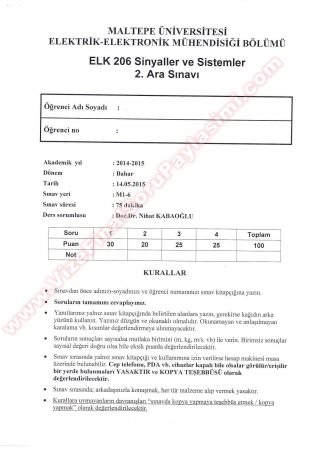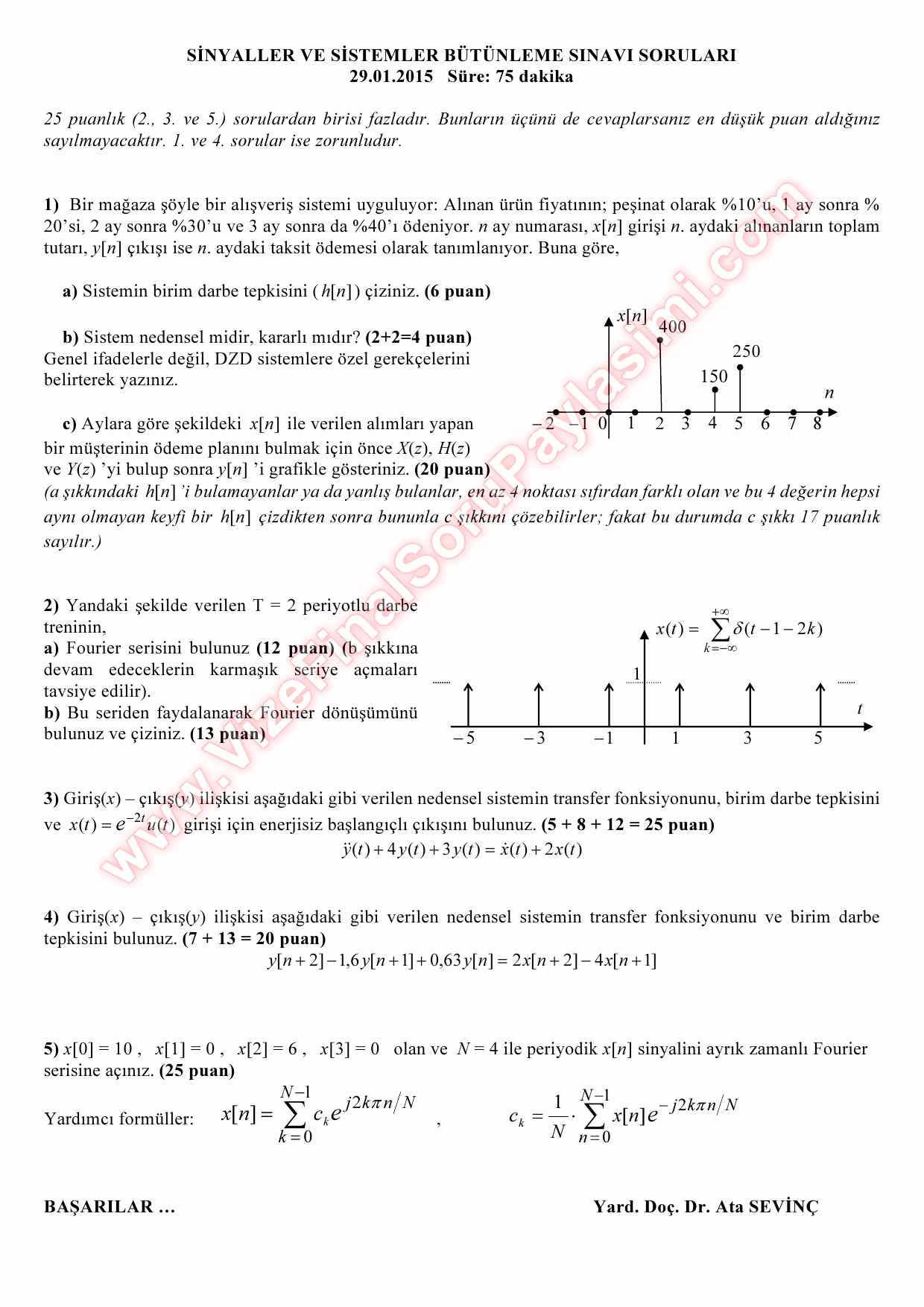 Sinyaller Ve Sistemler Bütünleme Soruları Bahar - 2014 30-08-2015, 00:18