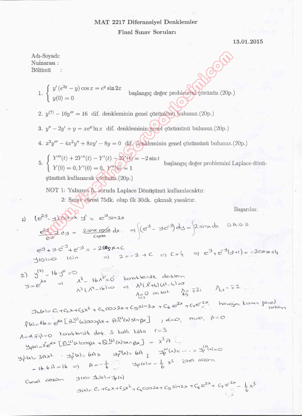 Diferansiyel Denklemler Final Soru ve Cevapları-2015