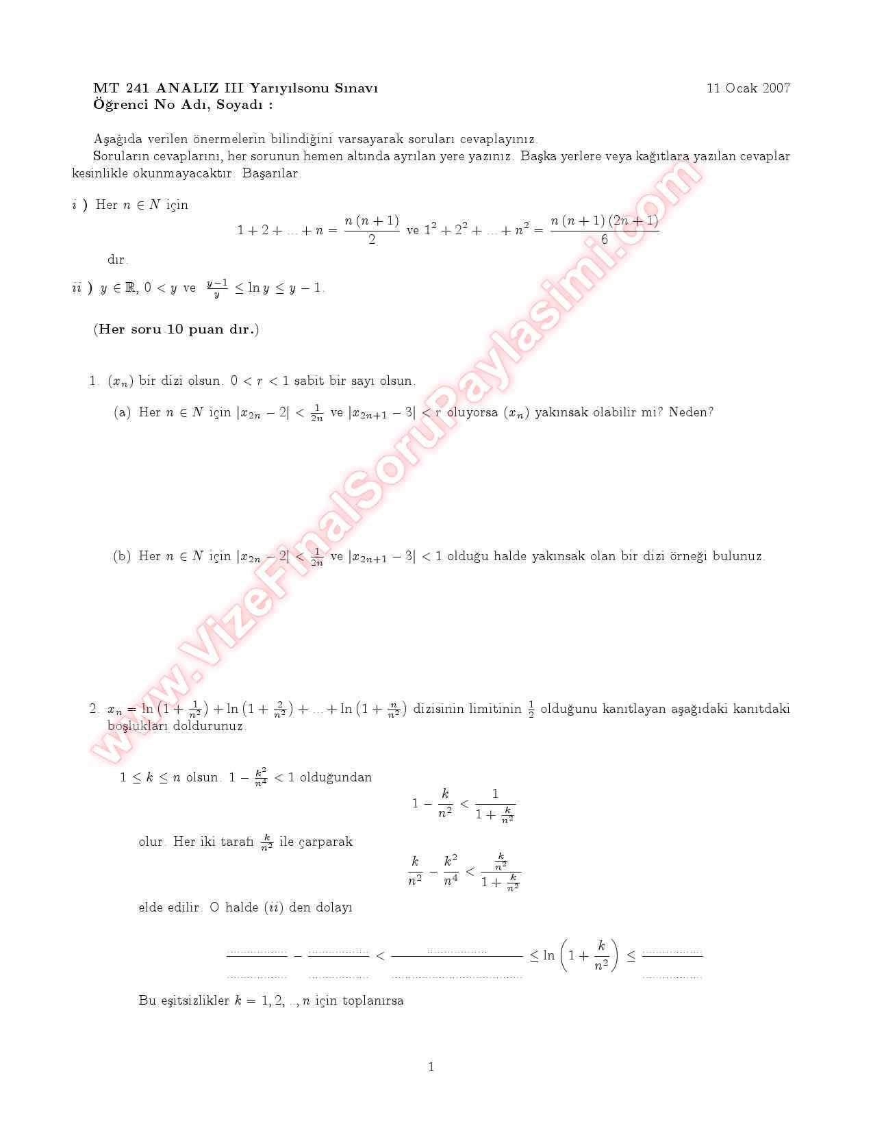 analiz3 final sorulari cozumleri 2007 GERİ DÖN-