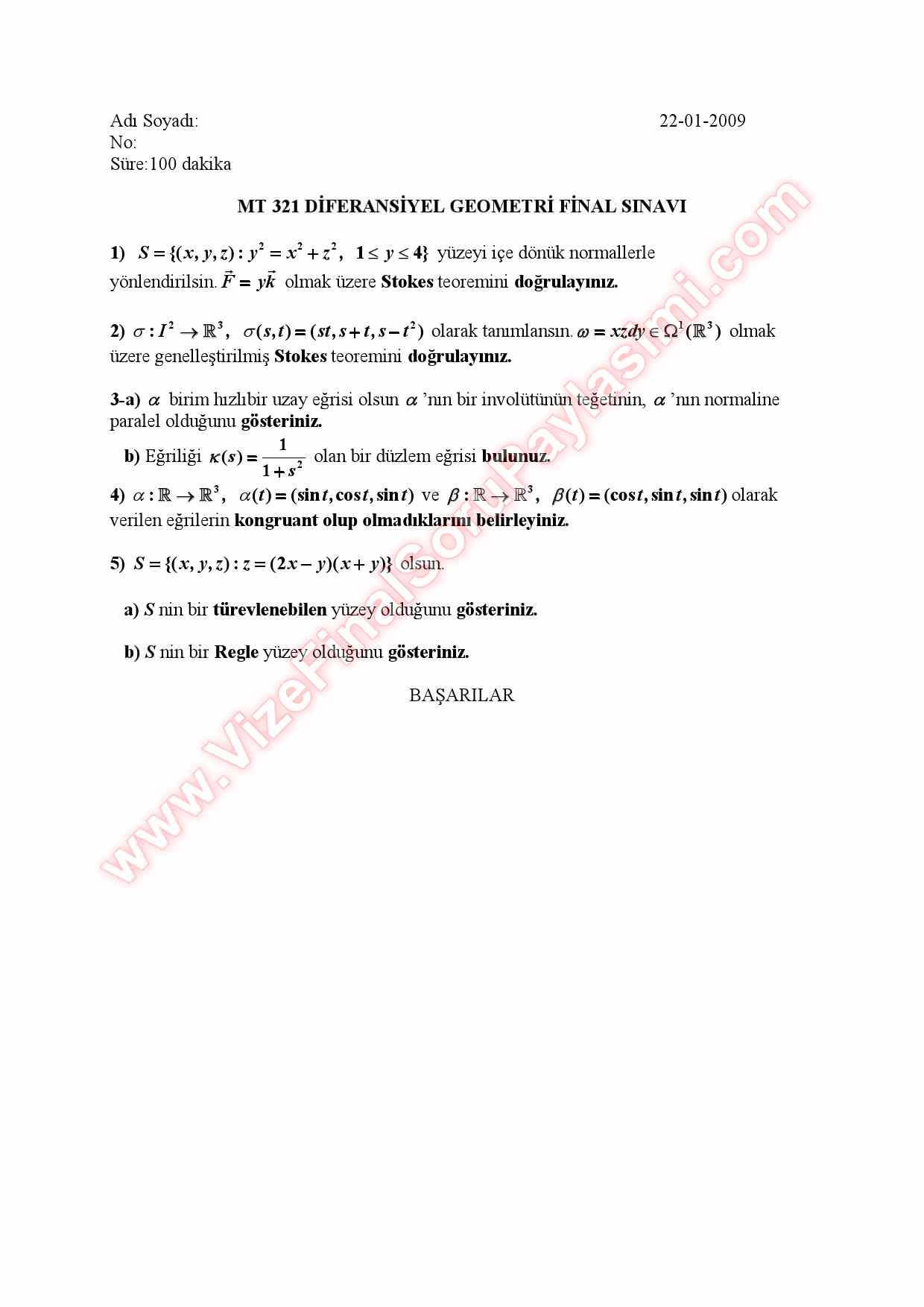 Diferansiyel Geometri-2 Vize Soruları Ve Cevapları 23-04-2015, 17:37