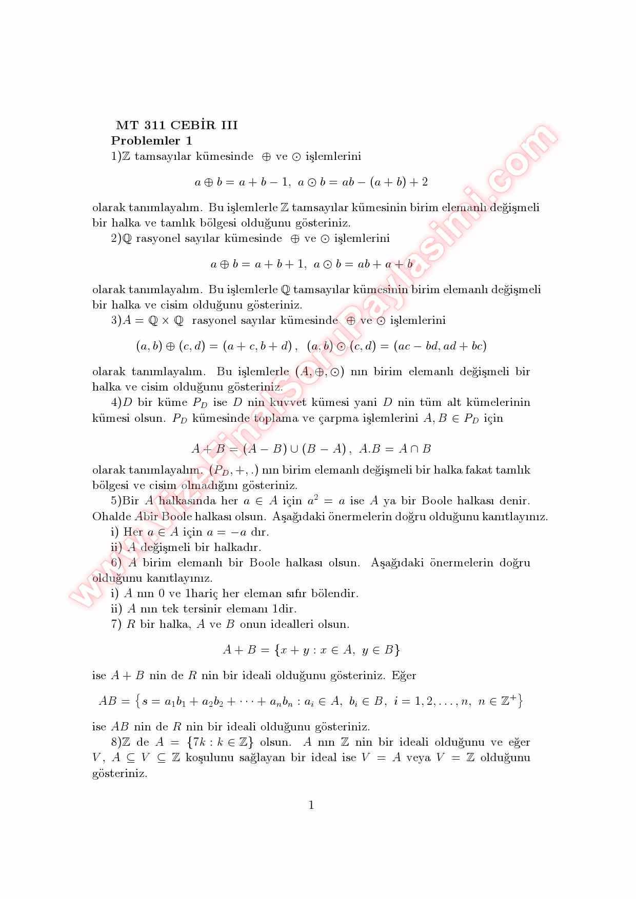 Cebir 3 Vize Soruları 31-08-2015, 19:29