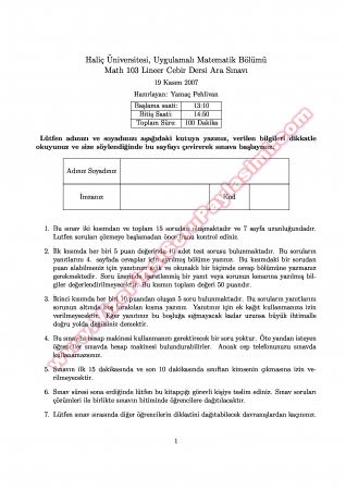 Lineer Cebir Vize Soruları - 10.11.2007 12-10-2014, 22:39