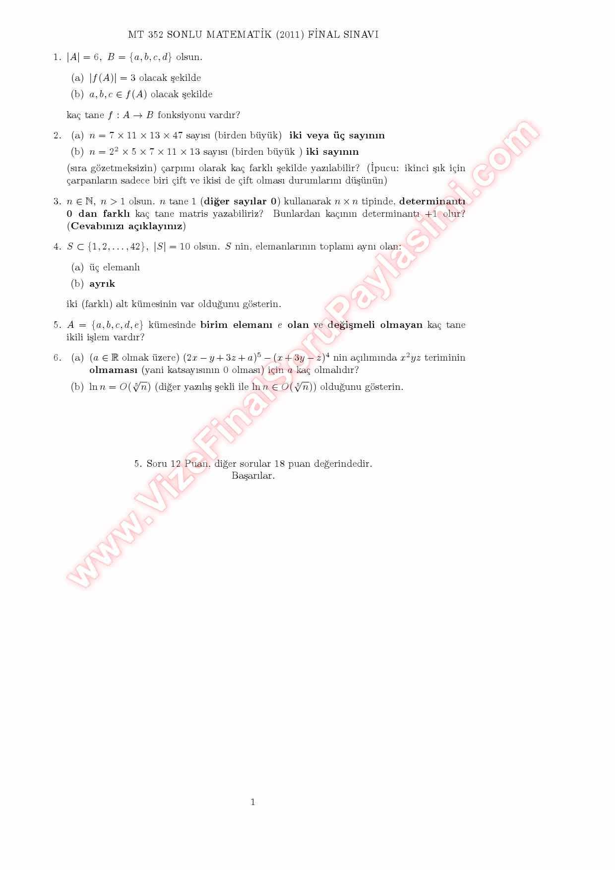 sonlu matematik Final sorulari cozumleri 2011 GERİ DÖN-