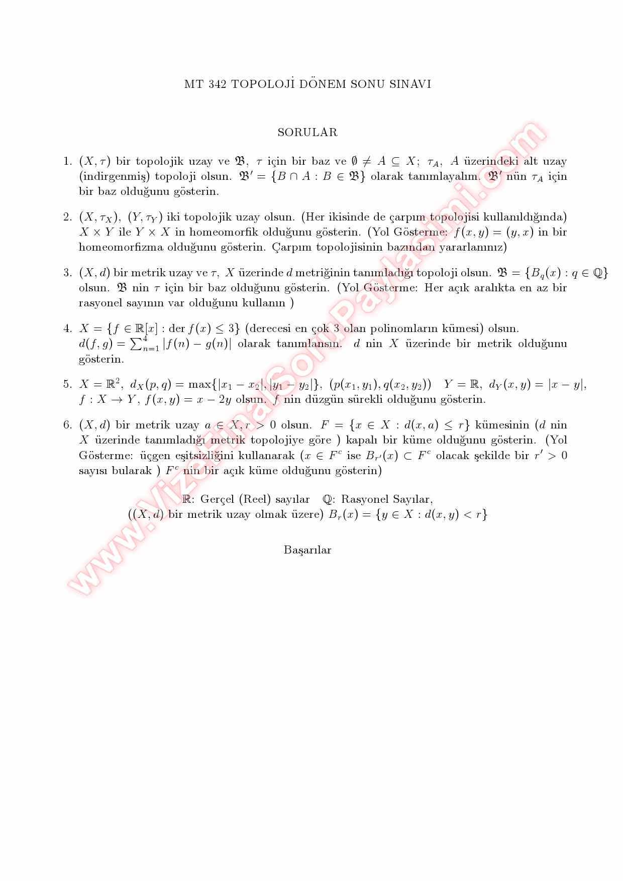 Topoloji Dersi Vize Soruları 25-06-2015, 07:40