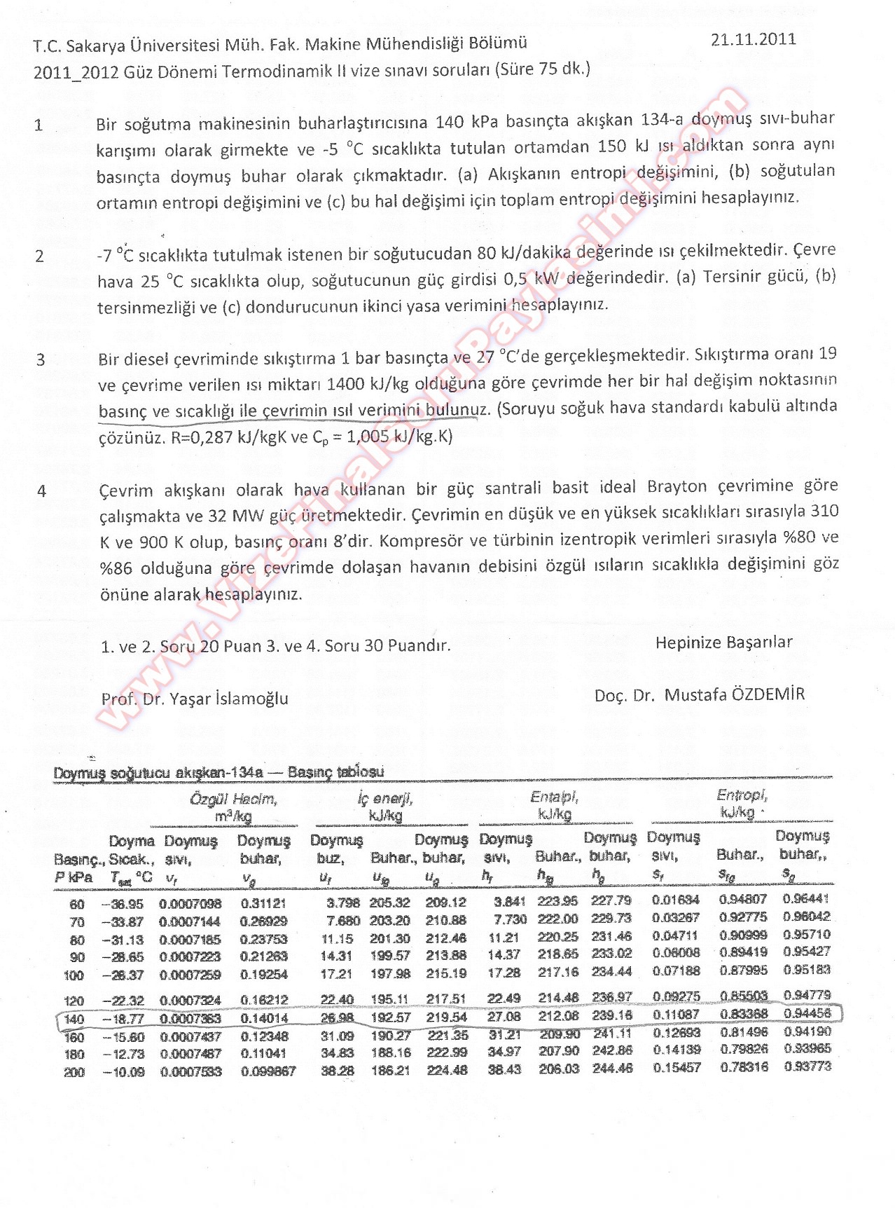 Vize ve Final Soruları / Sakarya Üniversitesi / Termodinamik-2