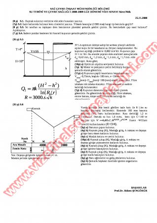 Vize ve Final Soruları / Ondokuz Mayıs Üniversitesi / Su Temini -2