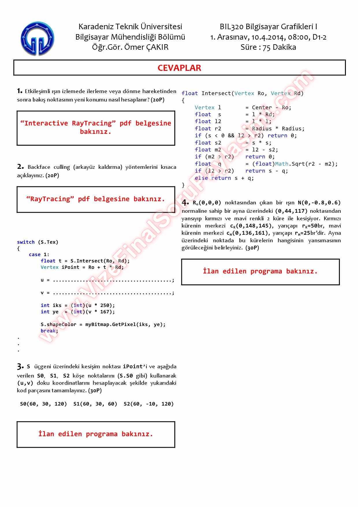 bilgisayar grafikleri1 vize sorulari cozumleri 2014