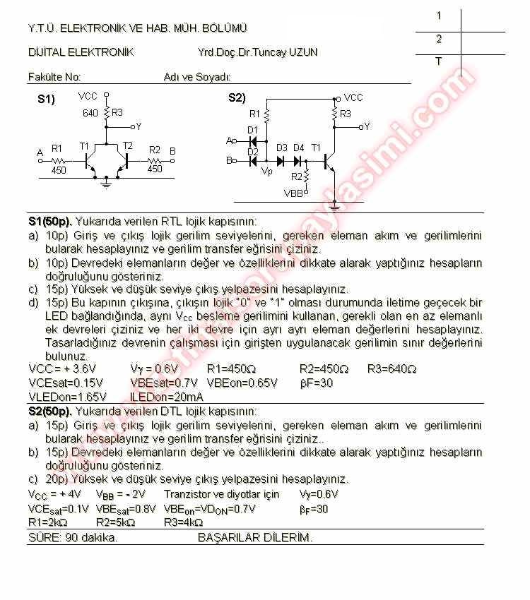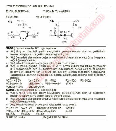 Vize ve Final Soruları / Yıldız Teknik Üniversitesi / Dijital Elektronik Dersi