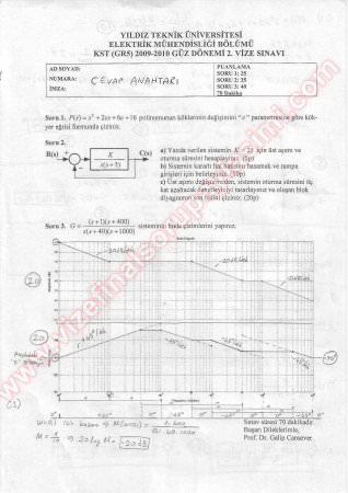 Vize ve Final Soruları / Yıldız Teknik Üniversitesi / Kontrol Sistemleri Tasarımı