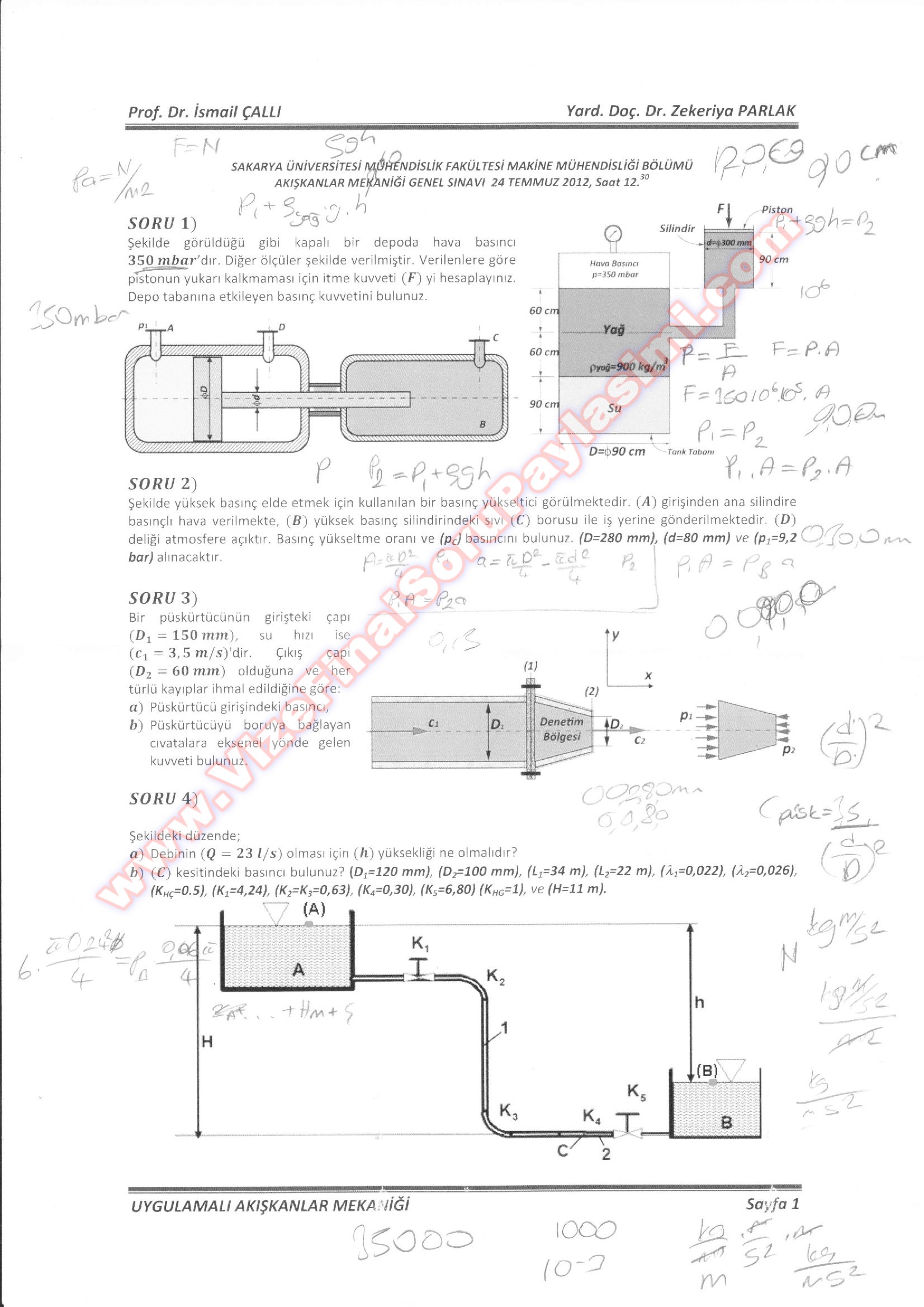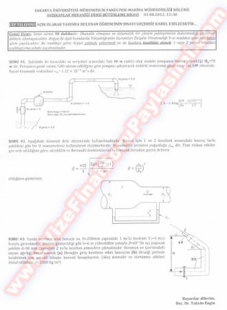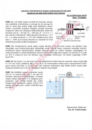 Vize ve Final Soruları / Sakarya Üniversitesi / Akışkanlar Mekaniği