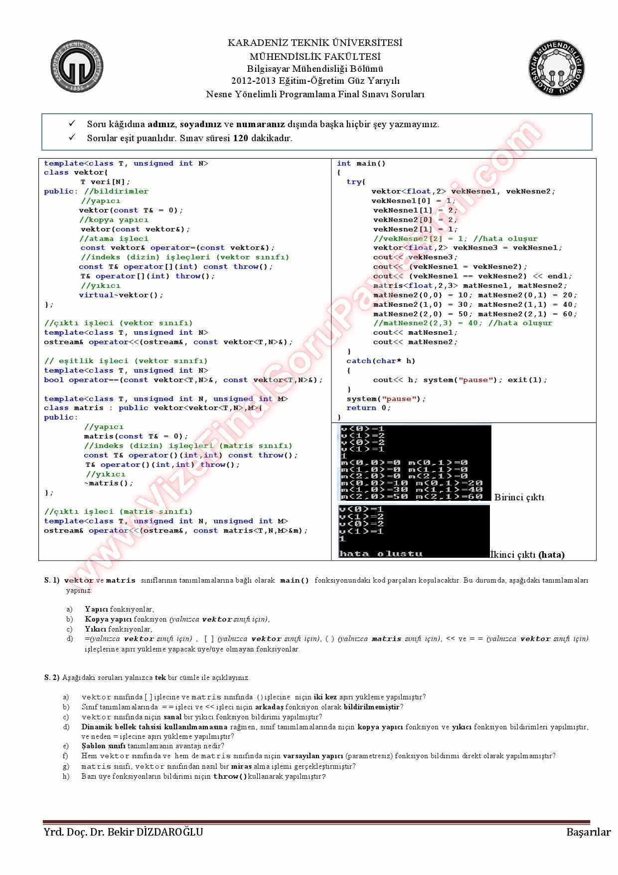 Vize ve Final Soruları / Karadeniz Teknik Üniversitesi / Nesne Yönelimli Programlama Dersi