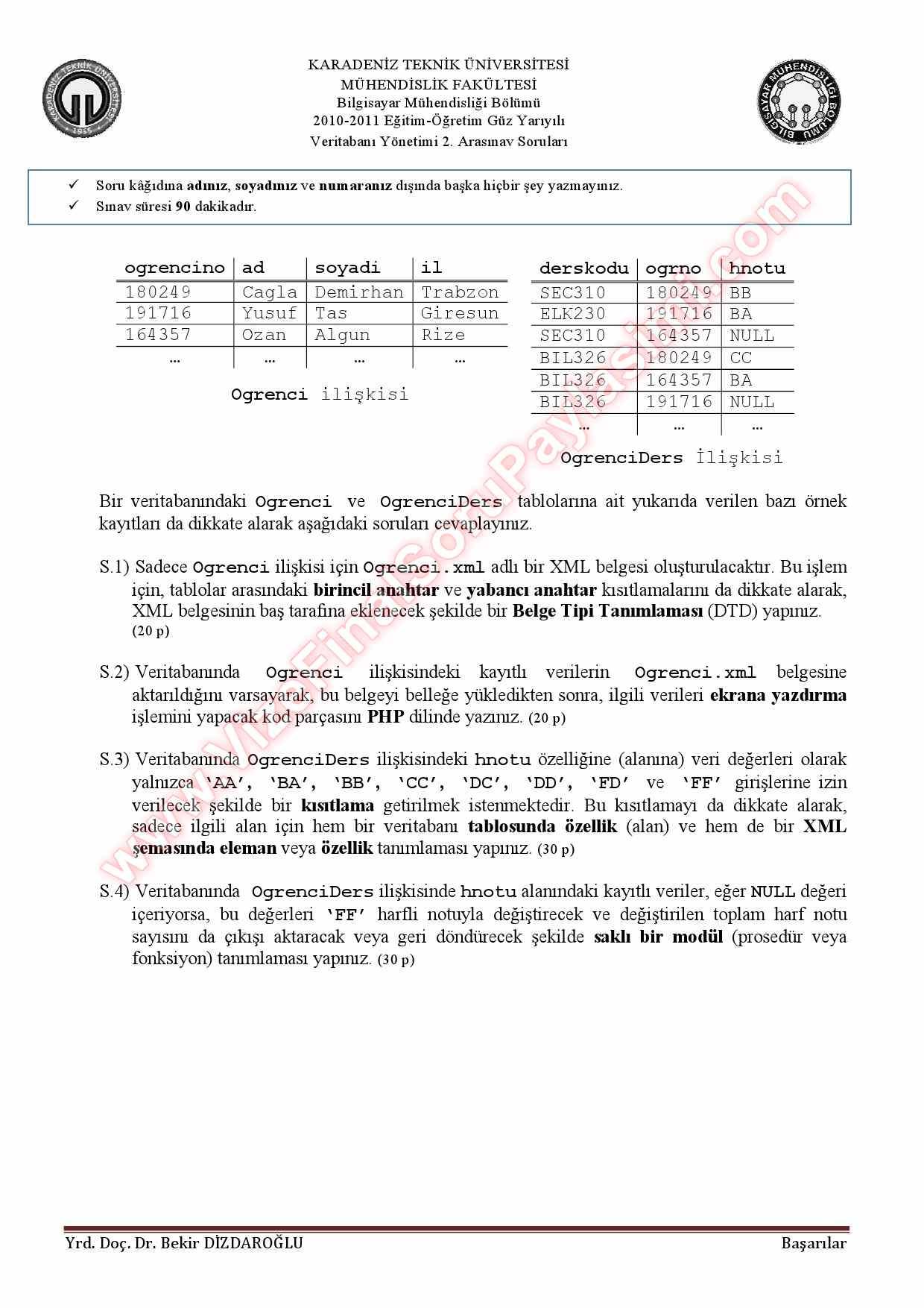 Veritabanı Yönetimi Vize Soruları Ve Çözümleri -2011 4-09-2015, 21:56