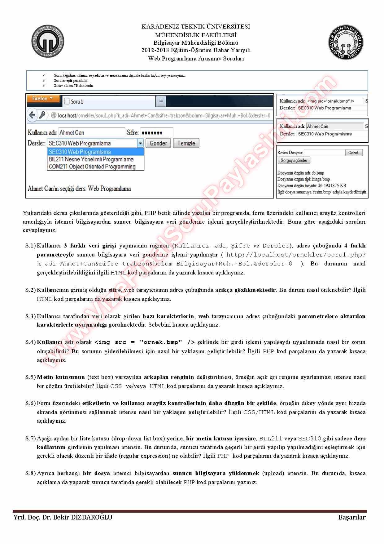 Vize ve Final Soruları / Karadeniz Teknik Üniversitesi / Web Programlama Dersi