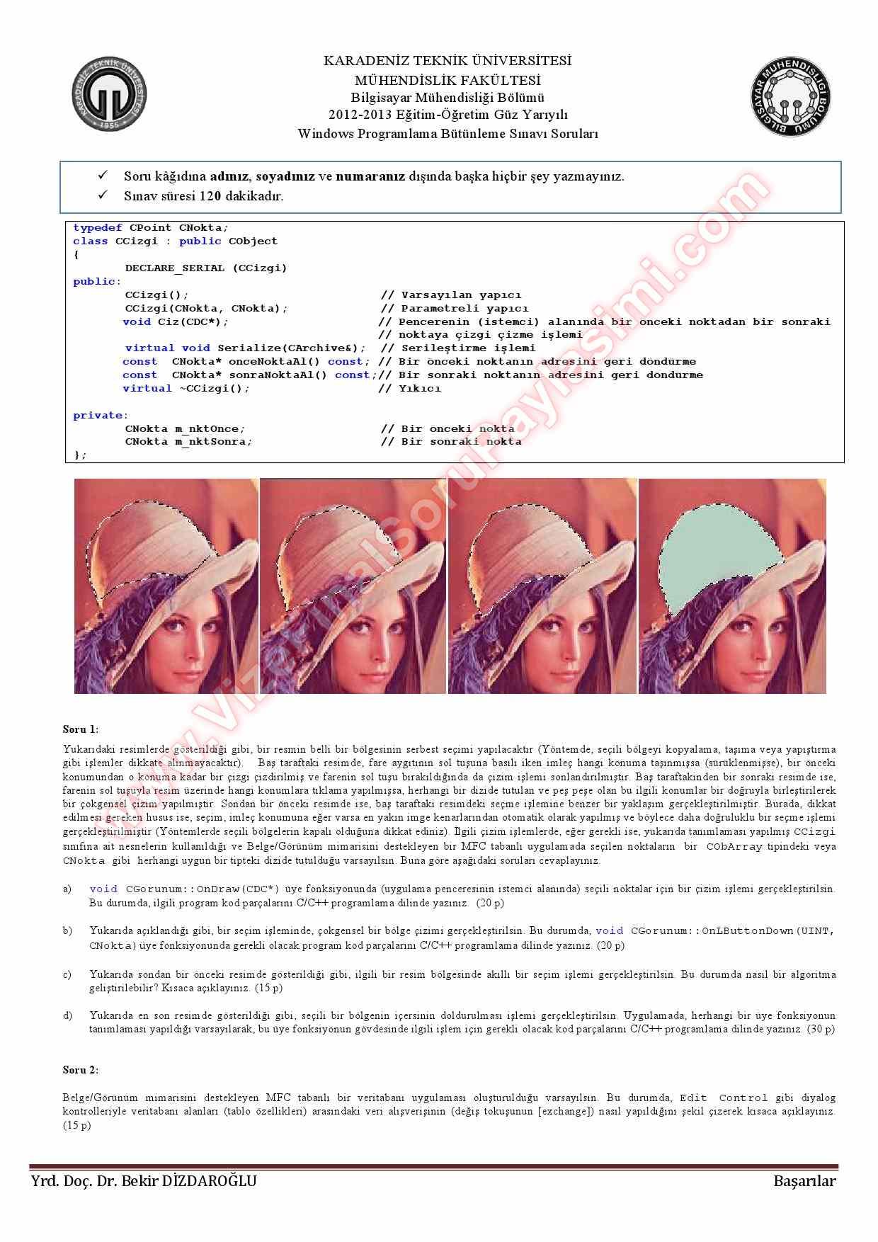 Vize ve Final Soruları / Karadeniz Teknik Üniversitesi / Windows Programlama Dersi