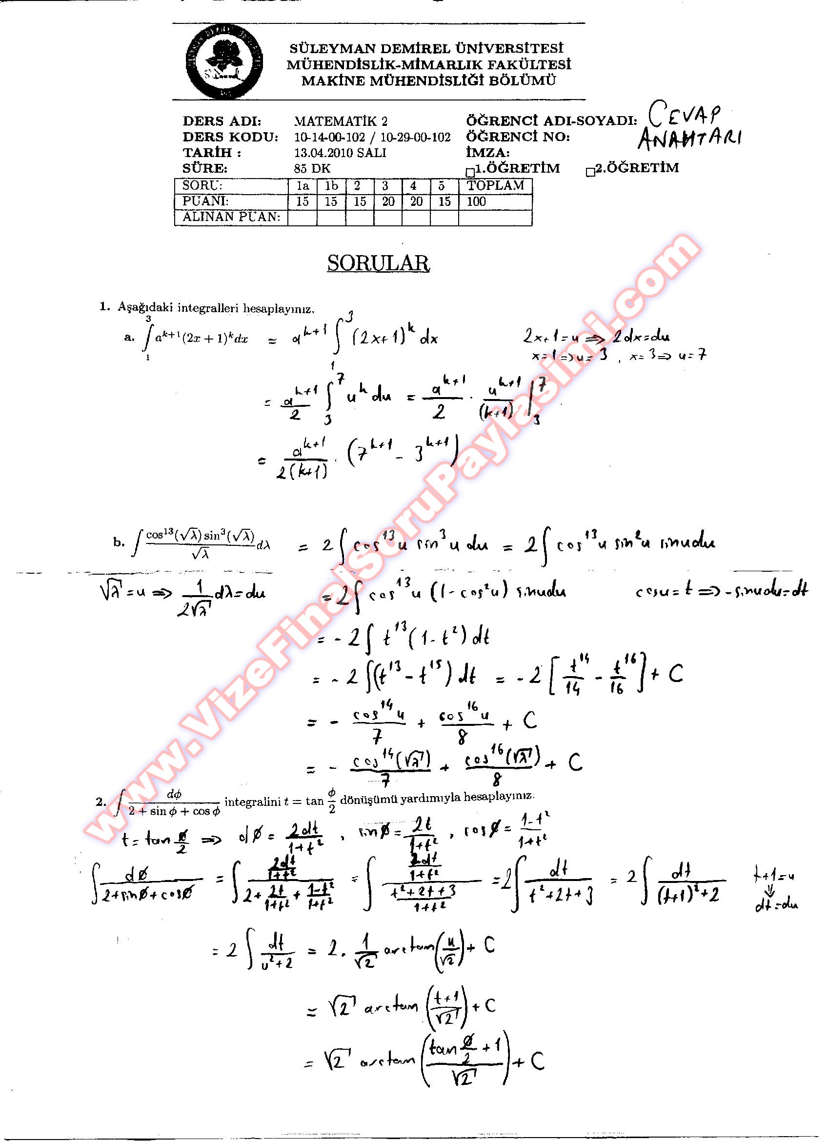 Vize ve Final Soruları / Süleyman Demirel Üniversitesi / Matematik-2