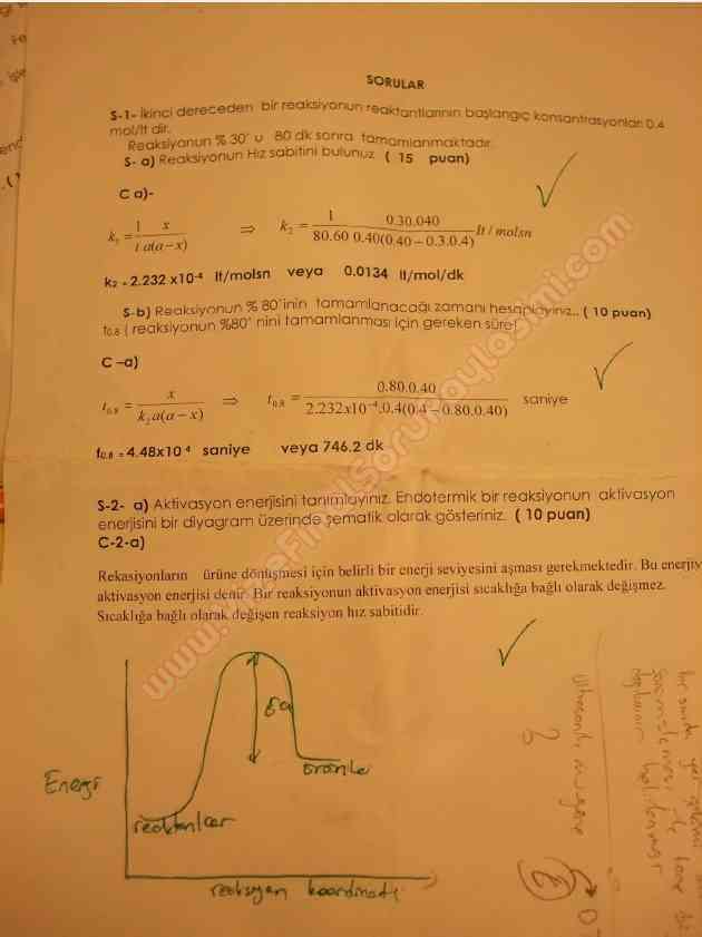 Vize ve Final Soruları / Yıldız Teknik Üniversitesi / Kinetik Dersi